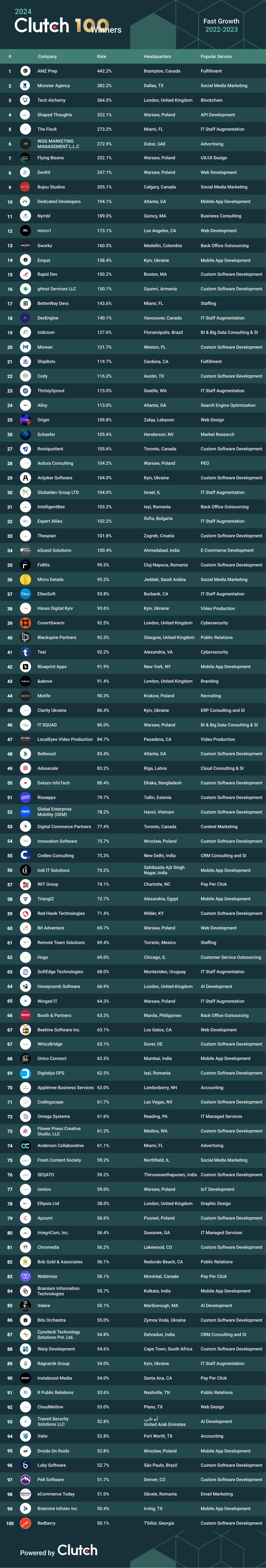 View the full Clutch 100 Fastest-Growing Companies of 2024 list below: