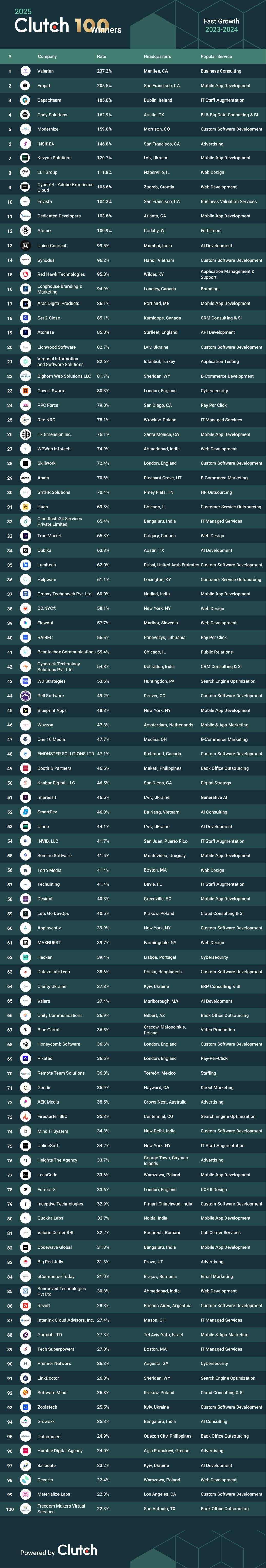 View the full Clutch 100 Fastest-Growing Companies of 2025 list below: