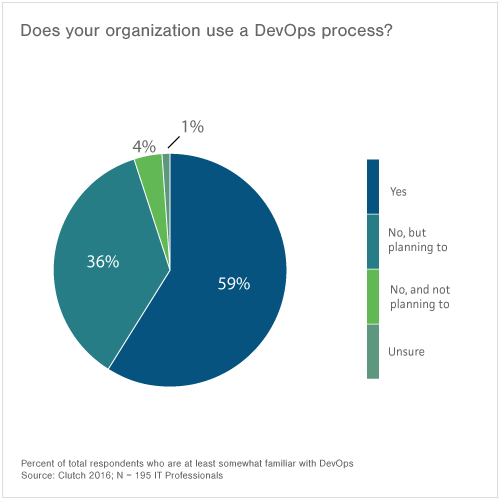 WASHINGTON, DC – January 24, 2017 – DevOps, a philosophy emphasizing collaboration and efficiency among software development and operations teams, still lacks a widely agreed upon definition despite being broadly recognized among IT professionals, according to a new survey report by Clutch, a leading B2B ratings and reviews firm.
