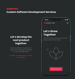 Unlock your business potential with Addevice's custom software development. Our 50+ skilled engineers, with a decade of experience serving US and EU clients, deliver innovative solutions. Let's transform your ideas into remarkable software together!